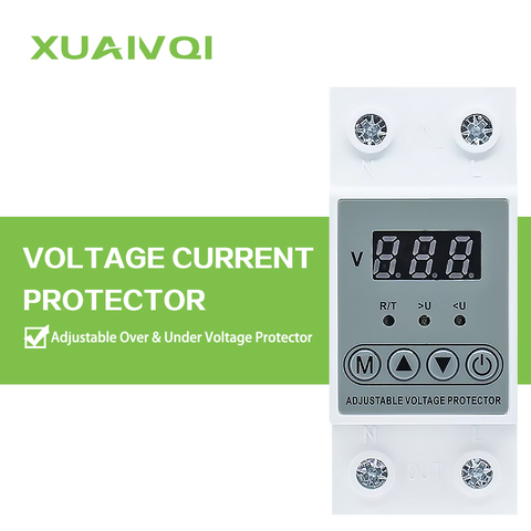 ตัวป้องกันกระแสไฟฟ้า63A แบบเฟสเดียวสำหรับแอร์ตู้เย็นไฟฟ้ากระแสสลับ220โวลต์ตัวป้องกันแรงดันไฟฟ้าเกินภายใต้แรงดันไฟฟ้า