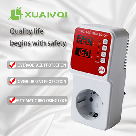 เต้ารับสากล120V 220V PC วัสดุทนไฟตู้เย็นตู้แช่แข็งเครื่องป้องกันแรงดันไฟฟ้าหน่วงเวลาตัวป้องกันแรงดันไฟฟ้าสำหรับบ้าน